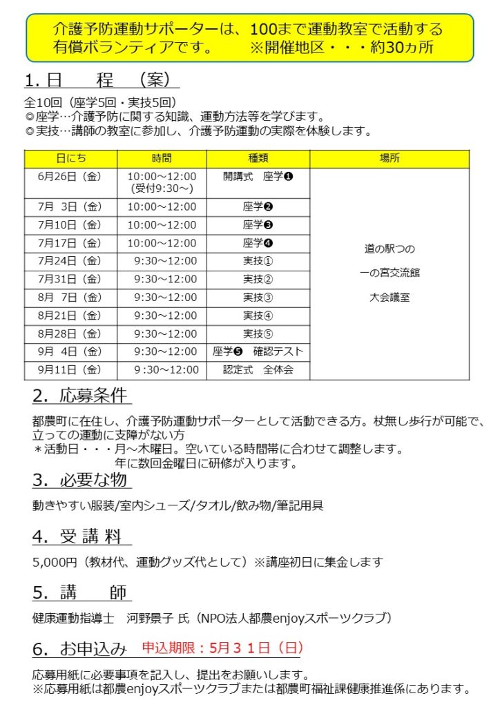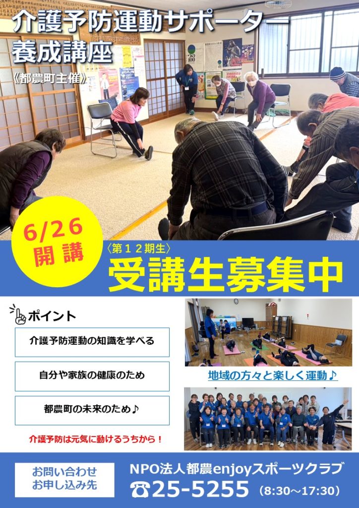 介護予防運動の知識や運動法を学び、地域の皆様と一緒に運動をしてくださる